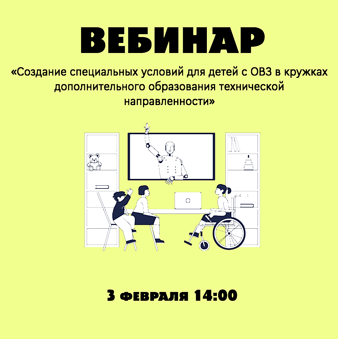 «Новые места дополнительного образования» приглашают педагогов, методистов, руководителей и их Пин Ап на вебинар «Создание специальных условий для детей с ОВЗ в кружках дополнительного образования технической направленности», который пройдёт 3 февраля в 14:00 на образовательной платформе «Сферум».